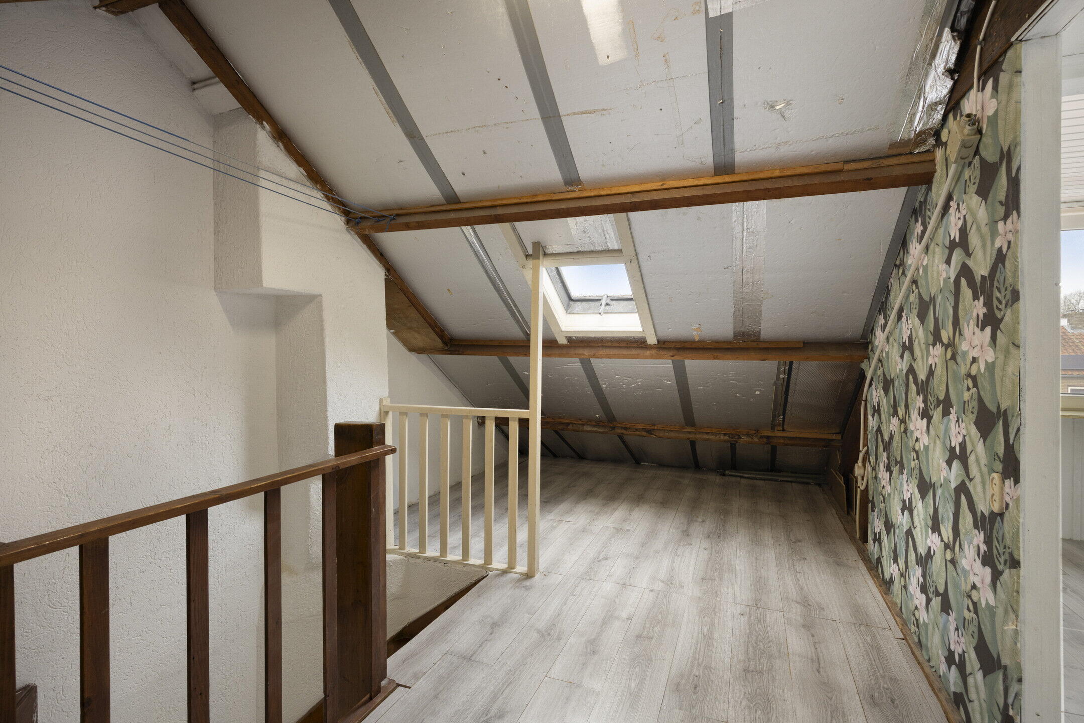 Overloop met vaste trap naar zolder. Maar liefst vier slaapkamers, allemaal voorzien van kunststof kozijnen met HR-beglazing, draaikiepramen. De 2 grote slaapkamers zijn voorzien van rolluiken. De gehele verdieping is afgewerkt met een laminaatvloer.