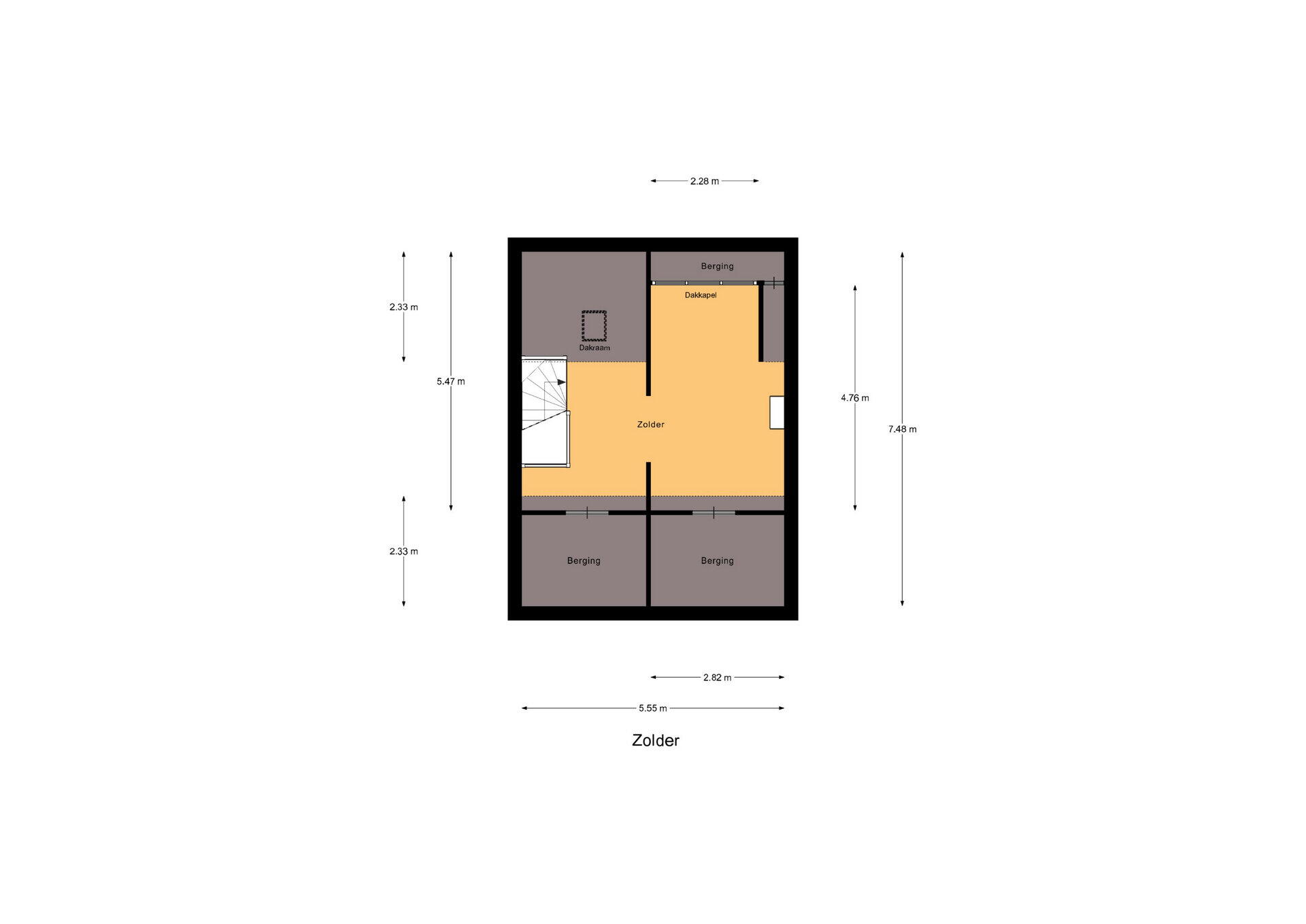 Via een vaste trap bereikbare ruime voorzolder met opstelplaats voor de CV-ketel (Nefit Trendline HRC30/CW5, 2015).